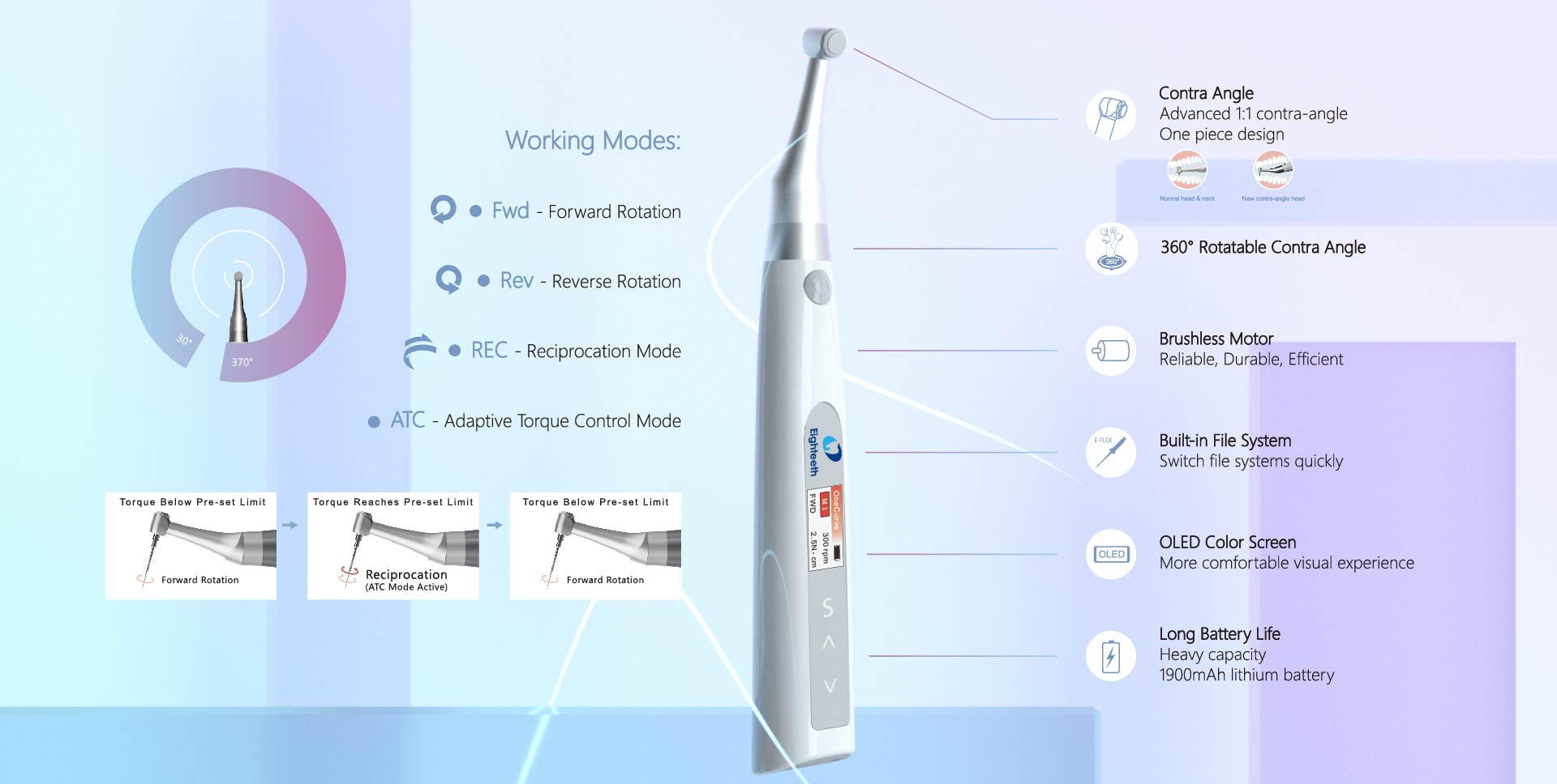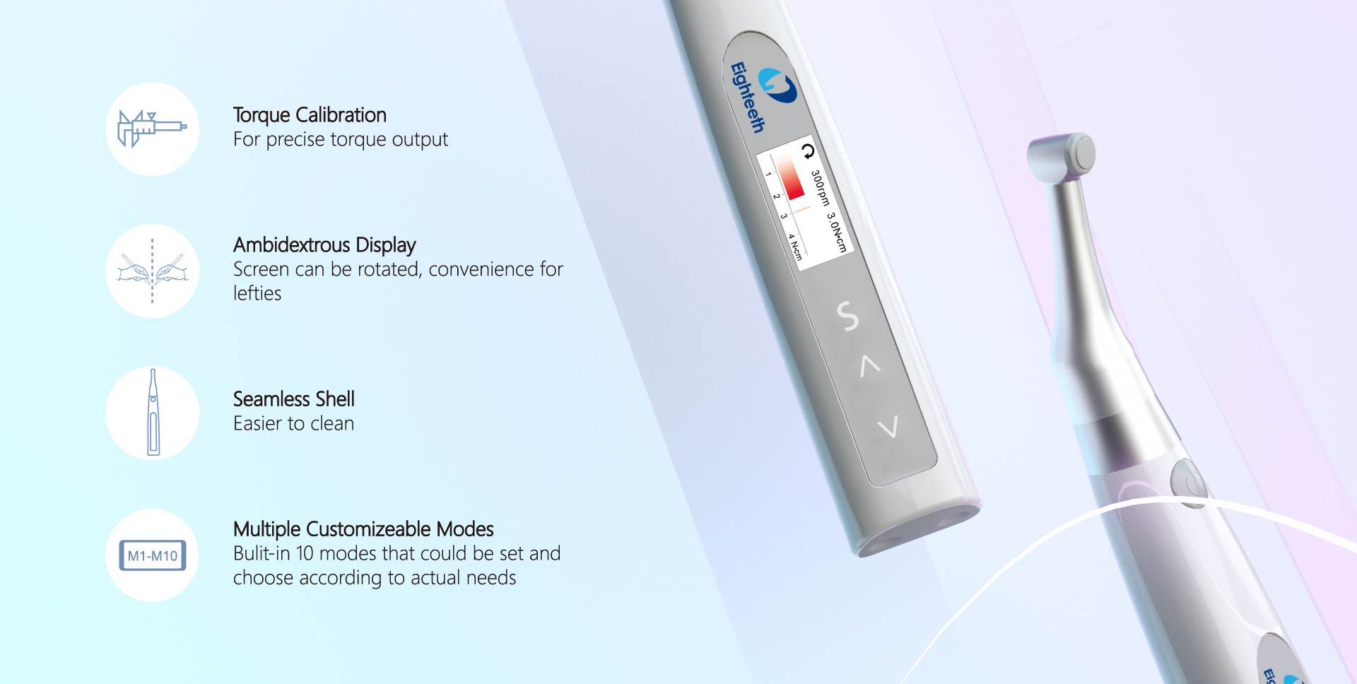 روتاری Eighteeth E Value در حقیقت جایگزین روش های دستی اندو با فایل های دستی و یا آنگل های روتاری شده اند. در حقیقت همزمان کارایی آنگل روتاری و آنگل اندولیفت را انجام میدهند. داشتن باتری برای استفاده در هر زمان و مکانی باعث کار راحت تر و دست و پاگیر نبودن تجهیزات جانبی در هنگام اندو میشود.